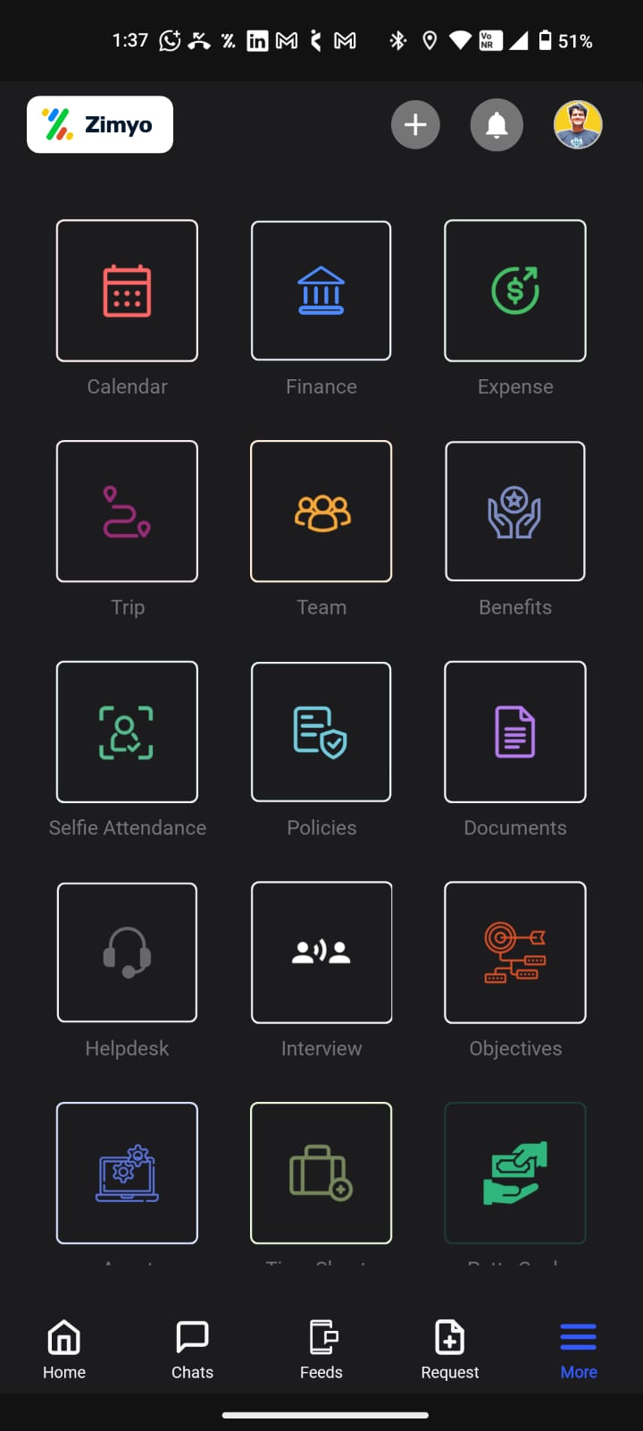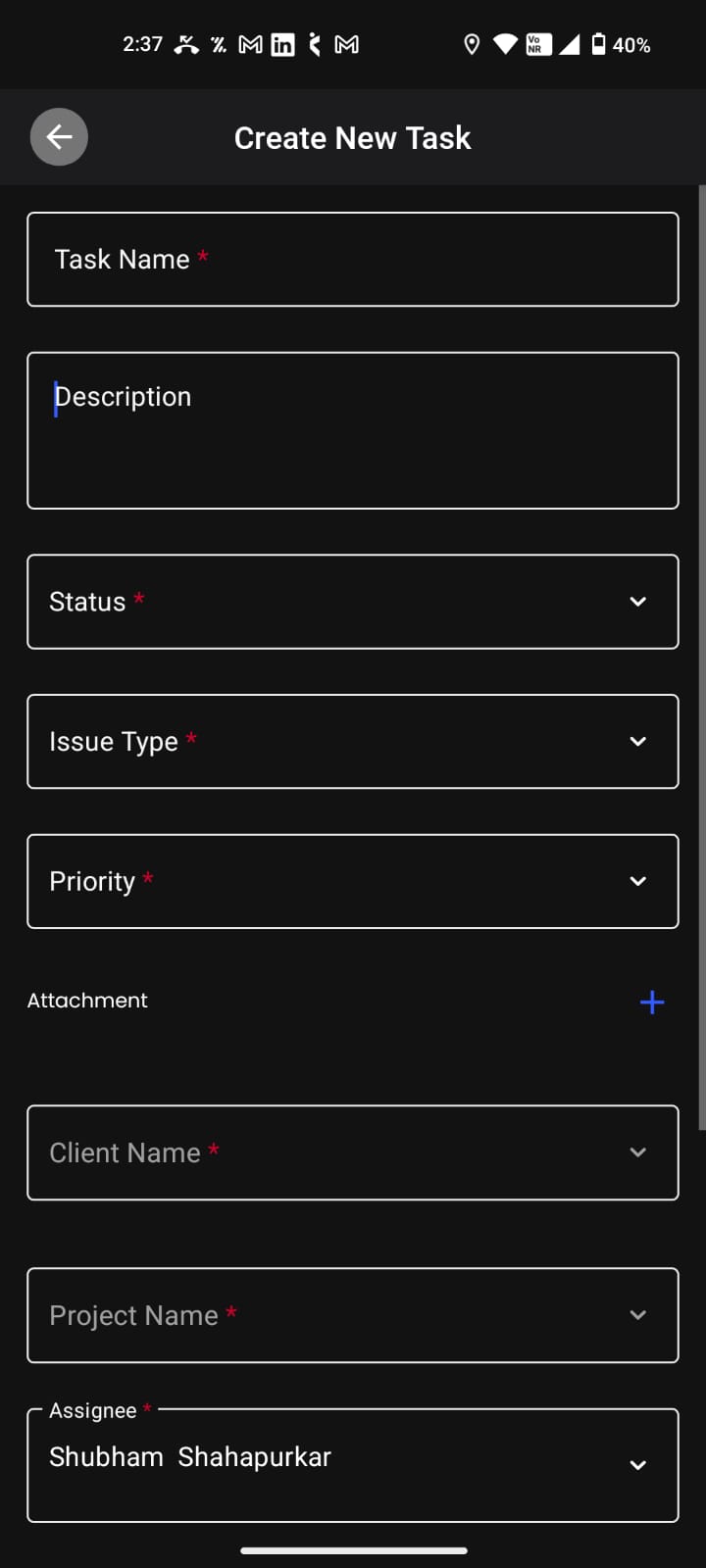 2. Go to More >> Tasks >> Click on Time Sheet then click on”+” Icon option on the top right corner of the screen >> Fill the details >> Click on “Create”.