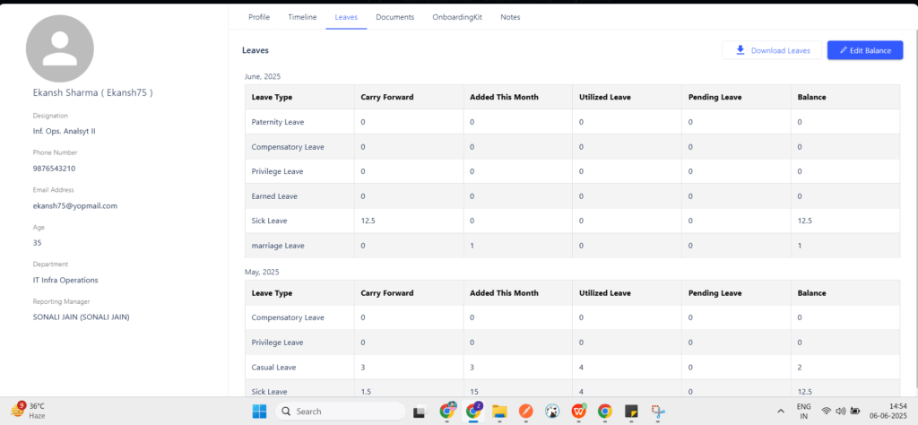 To manually assign or update the leave balance for an employee, please follow the steps below: